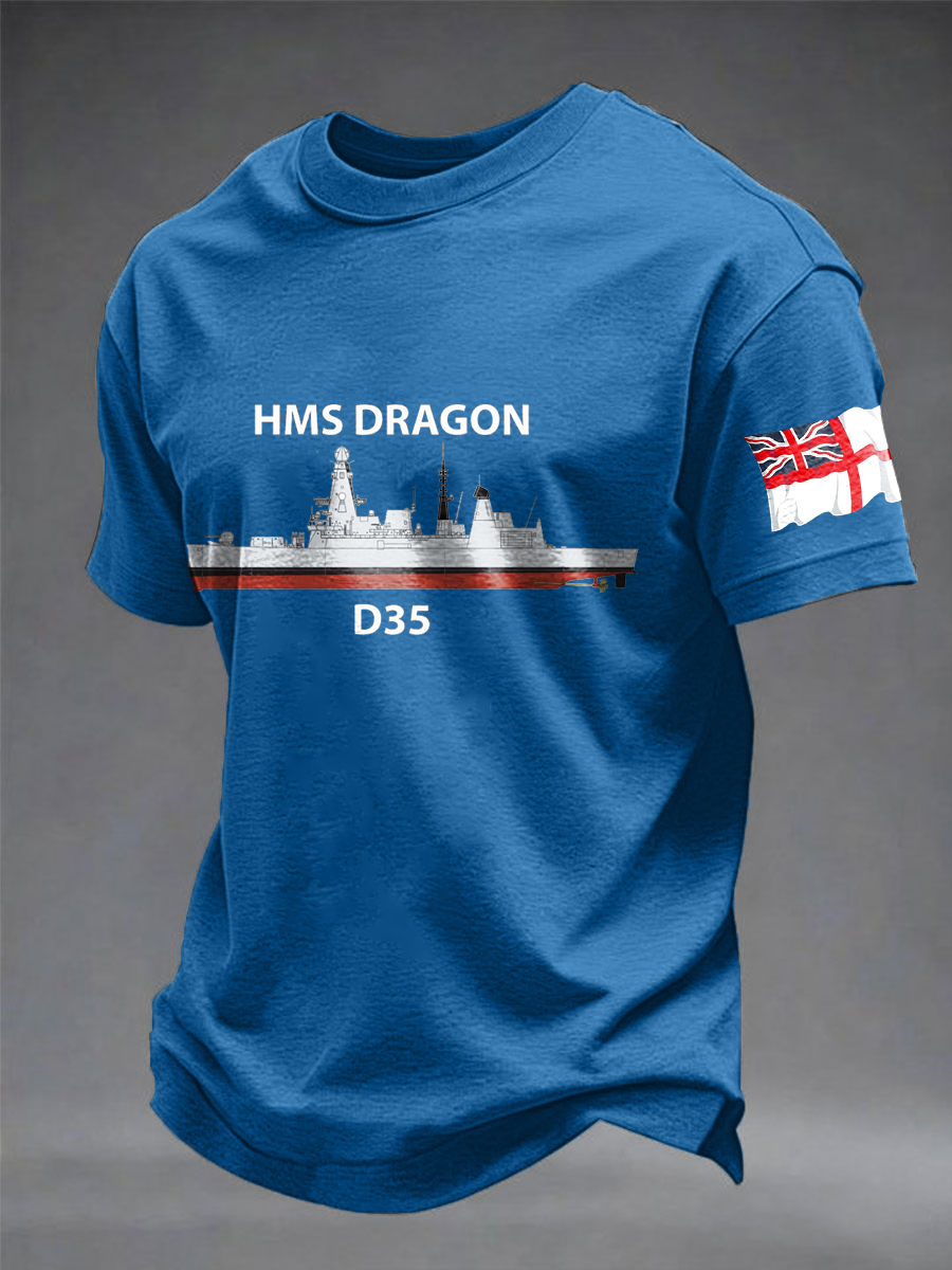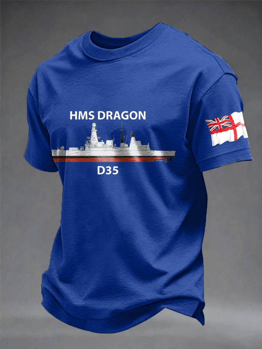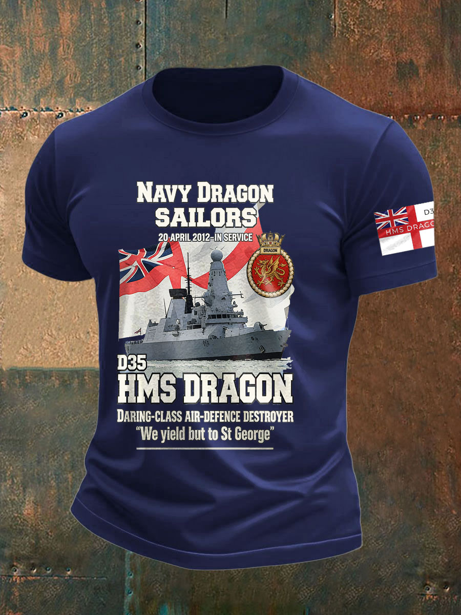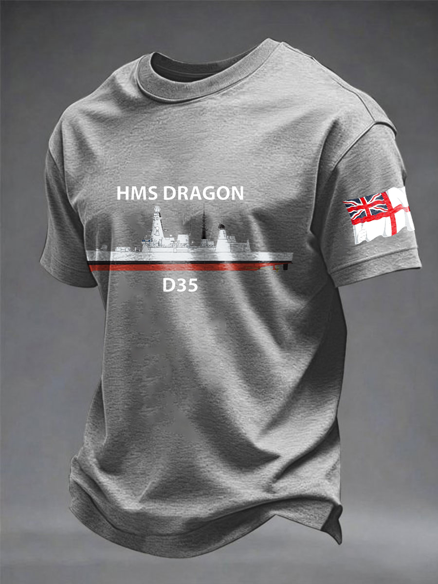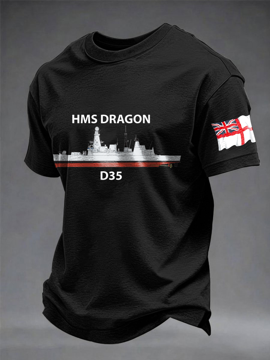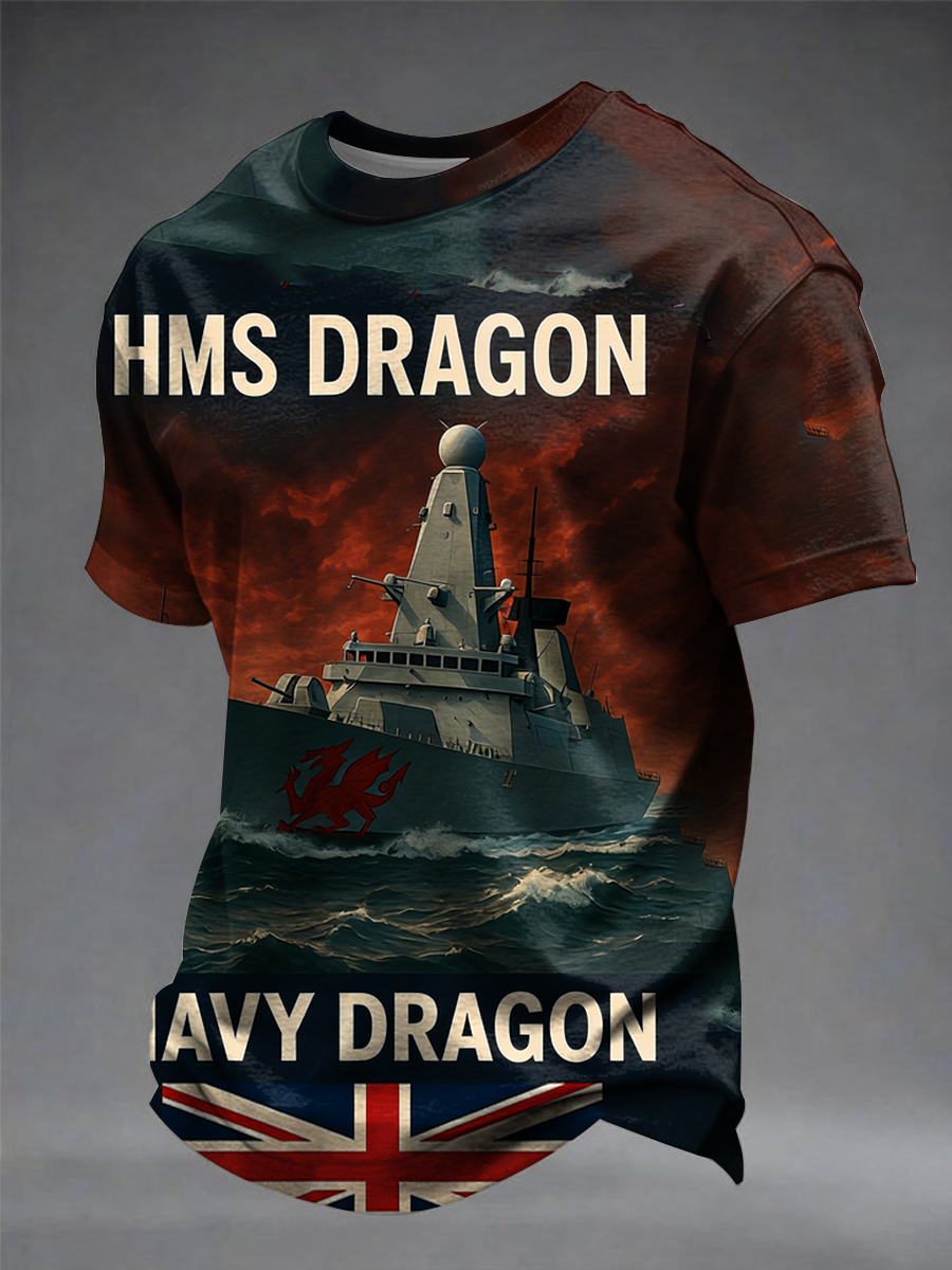 Men's British HMS Dragon Printed imitation cotton short-sleeved T-shirt
