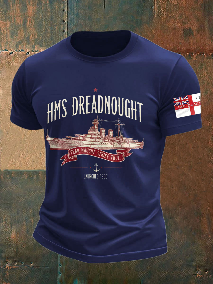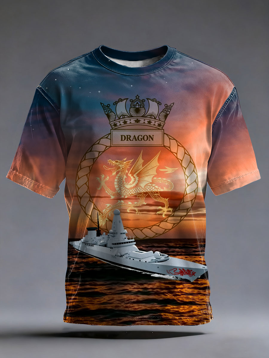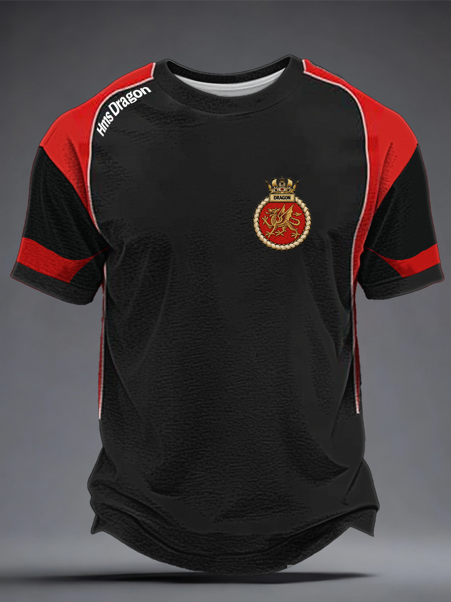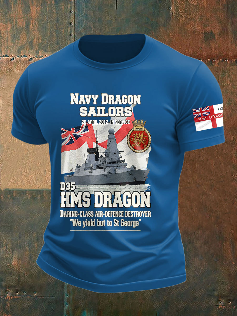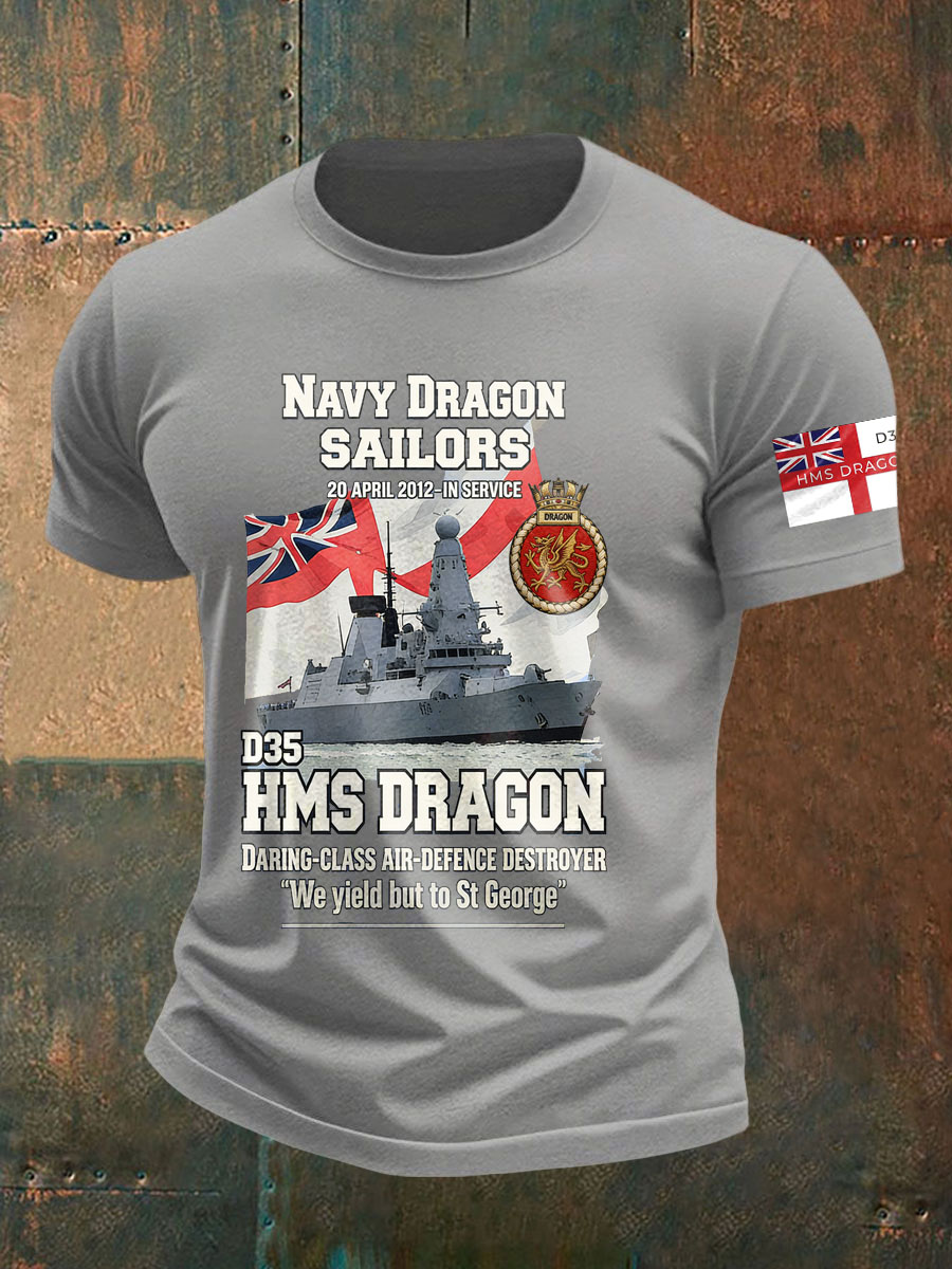 Men's British HMS Dragon Printed imitation cotton short-sleeved T-shirt