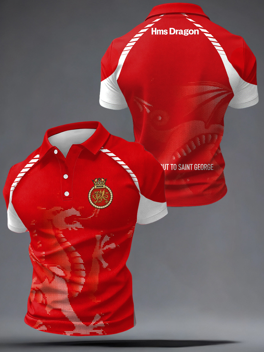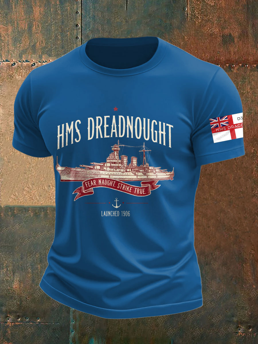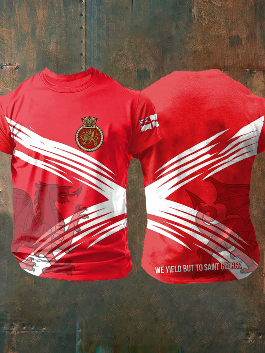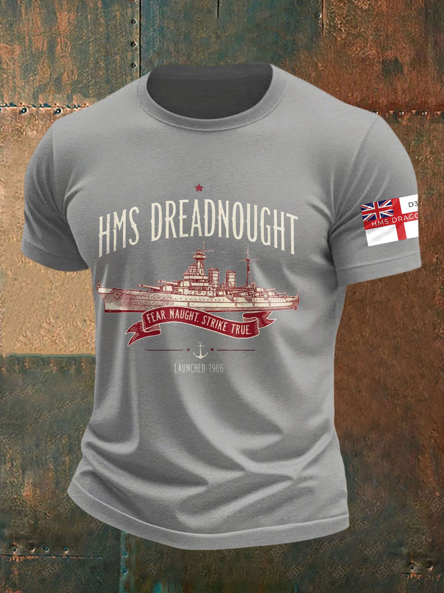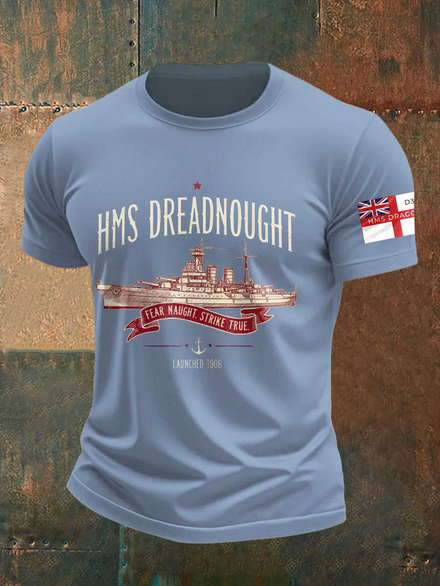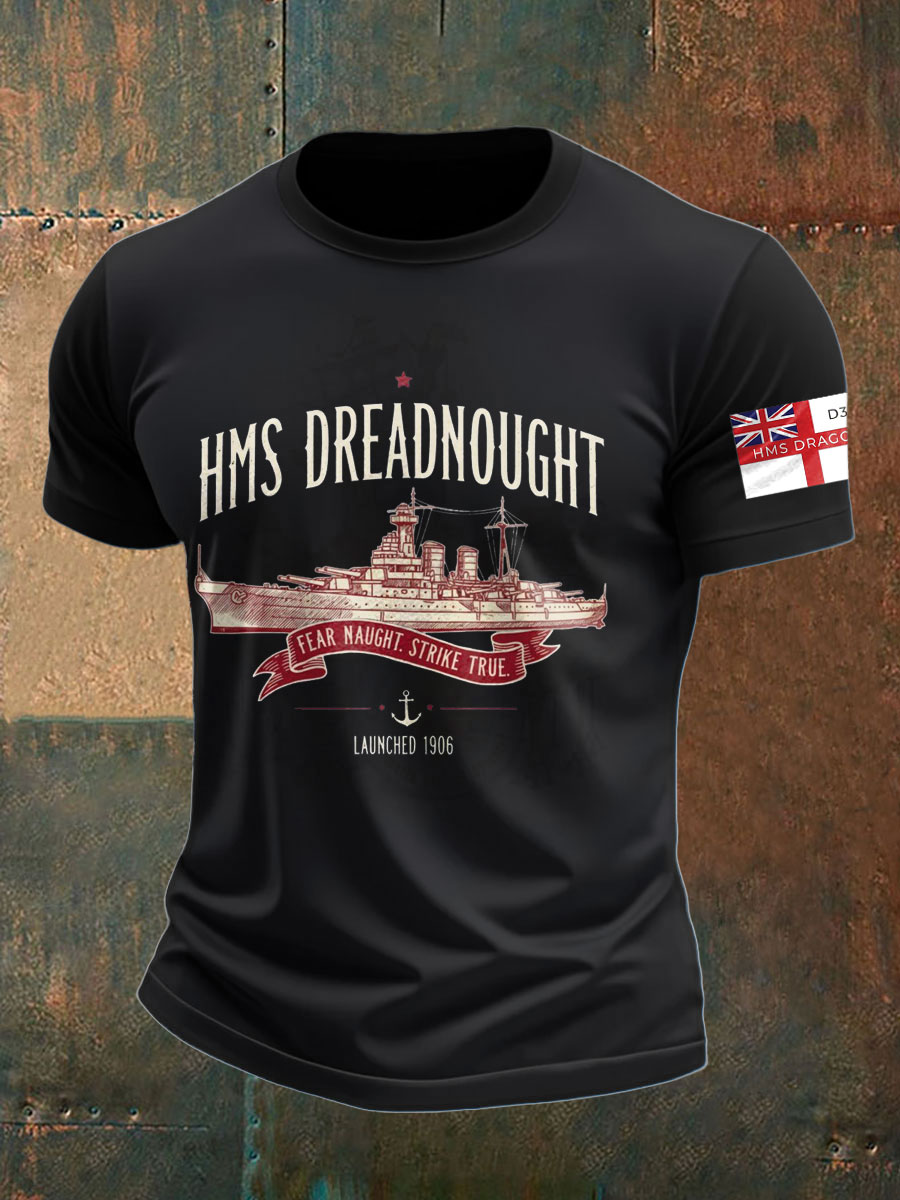 Men's British HMS Dragon Printed imitation cotton short-sleeved T-shirt