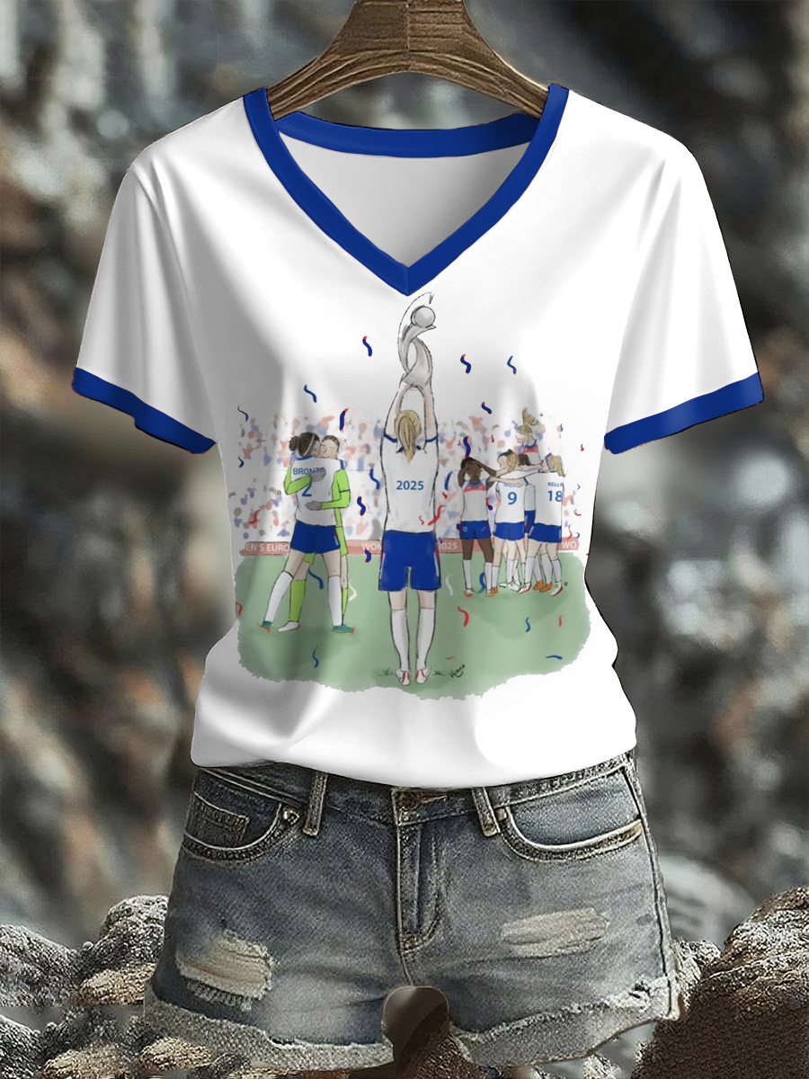 Women's UK England Football Lover Champion Printed T-shirt