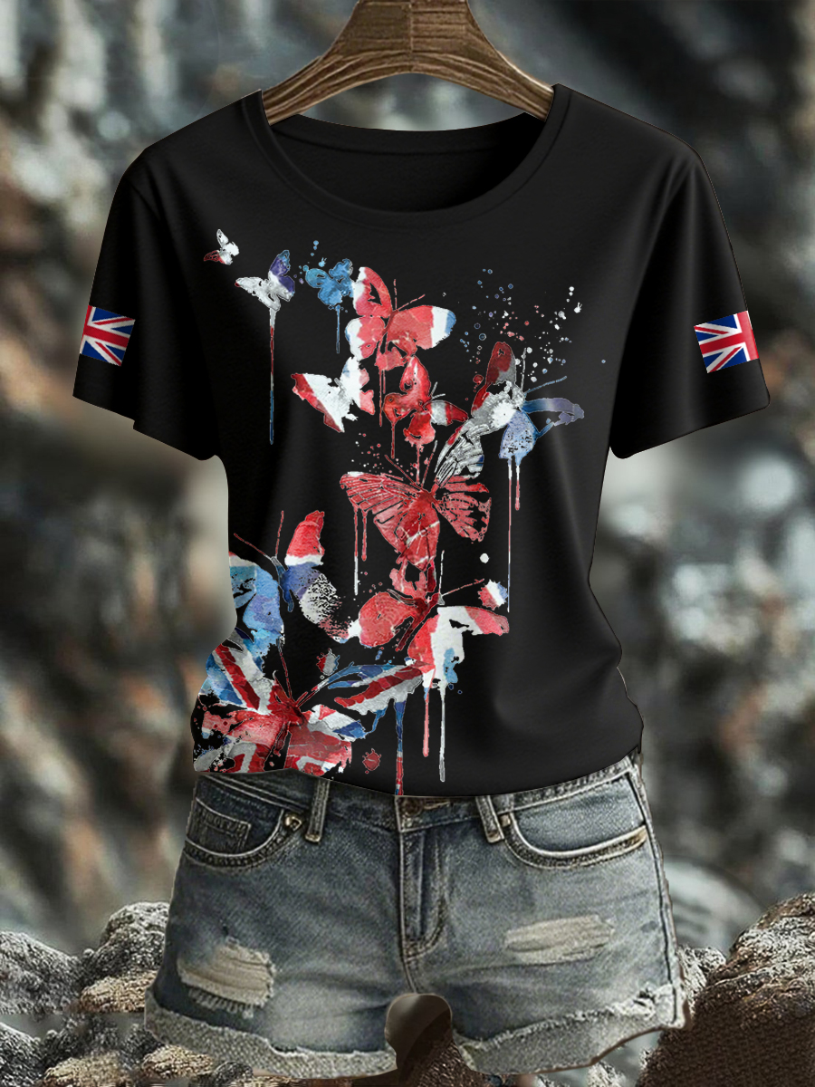 Women's UK Flag Butterfly Art Printed T-shirt