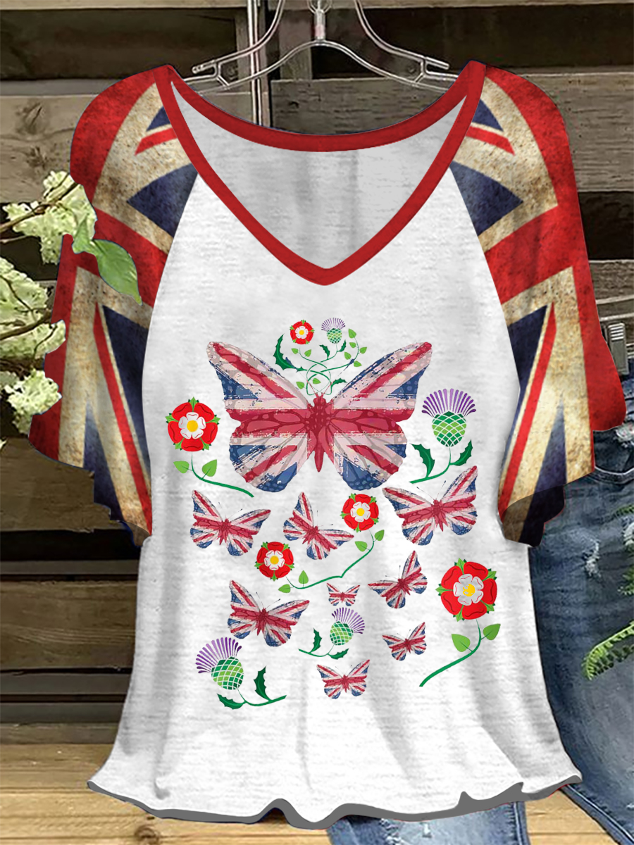 Women's Union Jack Butterfly Hang Shot Short Sleeve T-Shirt